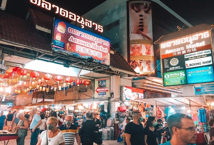 週日夜市:Ratchadamnoen Road (從塔佩門開始貫穿古城)。開門時間: